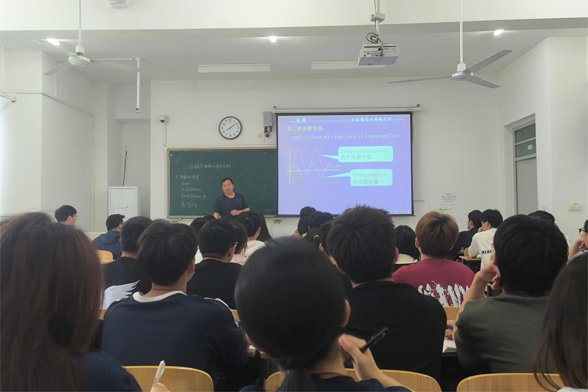 在本次示范课中,李勇教授向光电信息科学与工程专业23级3、4班的同学讲解了《电路分析》课程中的正弦稳态电路的分析一节。李老师在课堂上声音抑扬顿挫,板书清晰规范、思政元素引入自然深刻,同时通过极具亲和力的语言引导学生、鼓励学生、与学生交流互动,向青年教师展示了扎实的教学基本功。