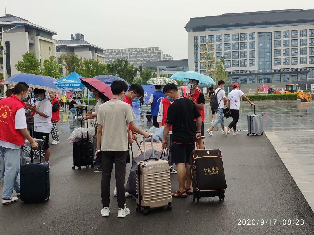 9月17日,电气与电子工程学院组织20级新生加入了繁忙的迎新志愿服务工作,一个个全新面孔冒着风雨奔波在校园各个角落。