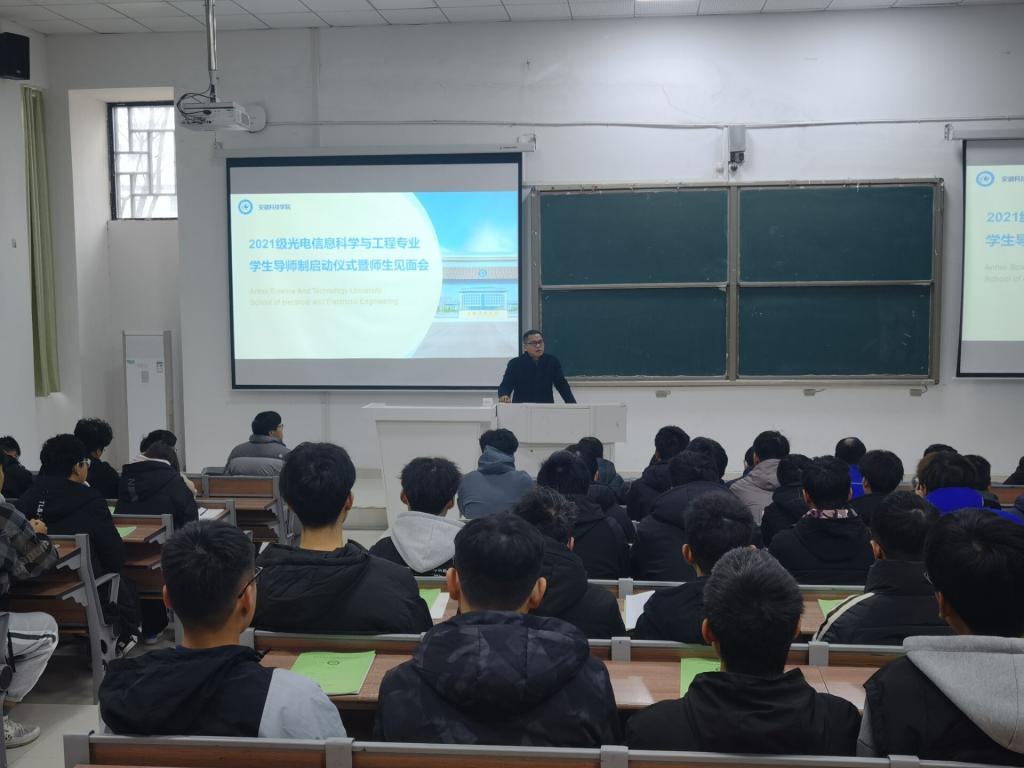为了全面推进落实“三全育人”,促进学生成长成才,12月29日,电气与电子工程学院于致知楼C111举办了光电信息科学与工程专业本科生学业导师制启动仪式暨师生见面会。电气与电子工程学院副院长(主持工作)夏显明、光电工程系主任李勇及全体导师、导生及21级光电专业新生参加了会议,会议由辅导员陈更强主持。