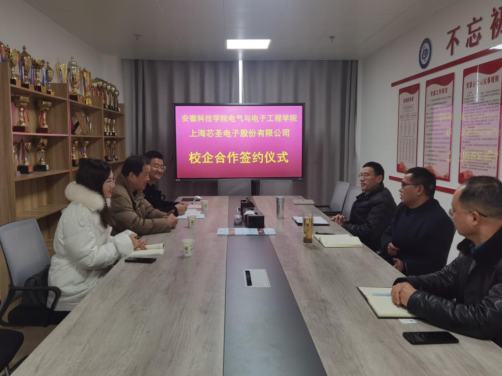 为进一步促进校企间合作,强化学生与就业市场间的联系程度,电气与电子工程学院积极探索校企合作事宜。2022年1月,学院邀请上海芯圣电子股份有限公司代表来校进行校企合作签约仪式。企业代表陆勇俭、张静、秦浩杰,学院党委书记骆海邦,党委副书记、副院长(主持工作)夏显明,党委副书记、纪委书记尚磊,电气工程系副主任徐朝胜,就业联系人洪乃羽出席会议。