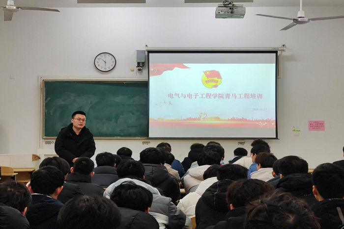 为深入学习贯彻习近平新时代中国特色社会主义思想,提高学生干部思想政治素养,坚定理想信念,厚植爱国主义情怀,彰显青春风采。电气与电子工程学院于2023年12月27日晚在致知楼C105举办青马工程培训会,学院全体学生干部参加会议。会议由于宏亮老师主持。