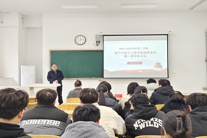 为深入贯彻落实习近平总书记关于青年工作的重要思想,顺利推进学院团委各部门工作,电气与电子工程学院团委于3月9日在致知楼C109教室召开团委委员第一次全体会议。学院党委副书记、纪委书记尚磊,团委书记张成孜,副书记洪乃羽,专职辅导员陈磊新出席会议,团委全体成员参加会议,会议由团委宣传部宁琦主持。