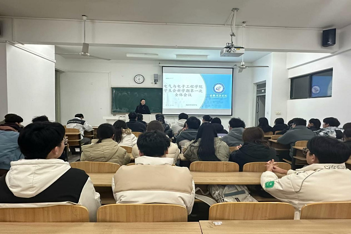 2024年2月27日,电气与电子工程学院学生会在致知楼C206教室举行了本年度首次全体会议。本次会议特别邀请了辅导老师陈磊新莅临现场,为学生会带来新学期的指导与鼓励。