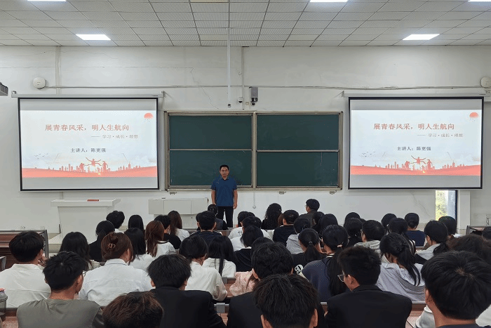 会上,陈更强以“青春的意义与价值”为切入点,围绕学习促进成长、成长孕育学习及理想引领未来三个方面阐述青年学生应如何提升自我价值,树立远大理想。他指出,青年时期是人生最为宝贵的时光,应被赋予更多使命感和责任感。他鼓励学生们不仅要在学术上追求卓越,掌握扎实的专业知识和技能,还要在为人处事上不断学习和成长,不断提升自我认知,加强自我认知,确立人生目标,树立崇高理想。