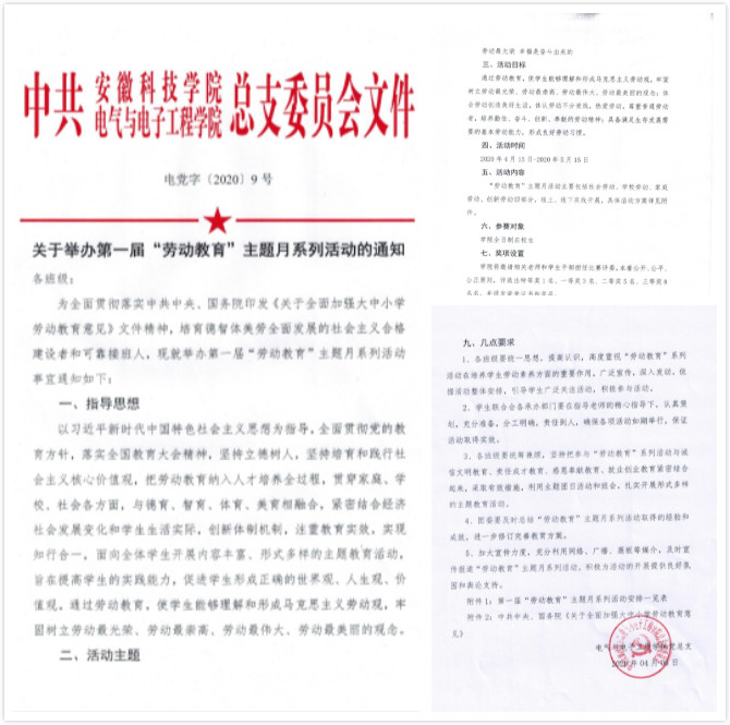 深入贯彻落实中共中央、国务院《关于全面加强大中小学劳动教育意见》文件精神,坚持和践行社会主义核心价值观,将劳动育人纳入人才培养全过程,近日,电气与电子工程学院党总支制定了《关于举办第一届“劳动教育”主题月系列活动的通知》(以下简称《通知》)。活动主题是“劳动最光荣,幸福是奋斗出来的”。