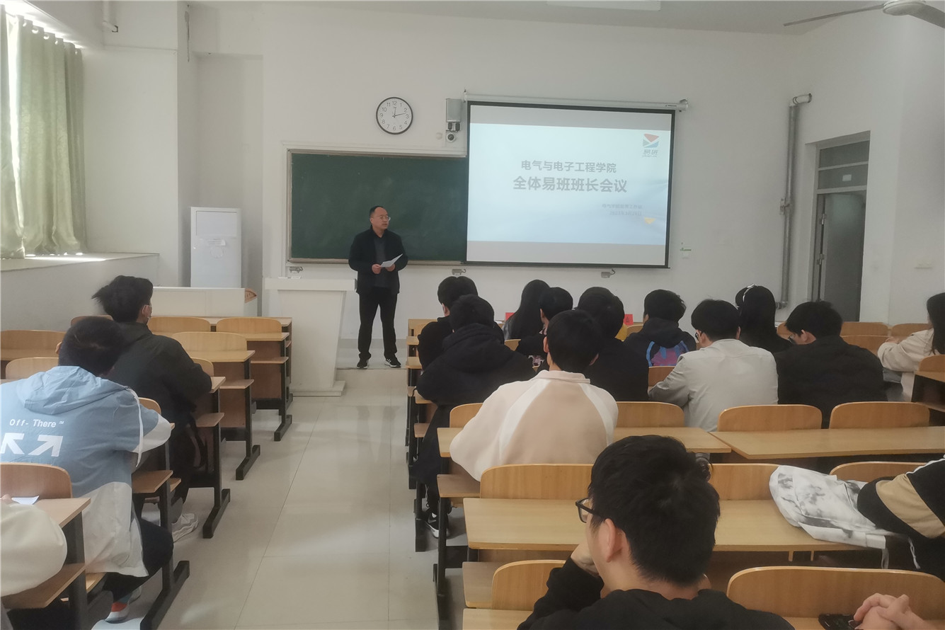 为进一步加强学院易班工作站建设,做好新学期易班重点工作部署,电气与电子工程学院3月29日于致知楼C109召开易班班长工作会议。学院党委副书记、纪委书记尚磊出席会议,易班工作站全体成员及全体易班班长参加会议。会议由易班工作站指导老师张深主持。
