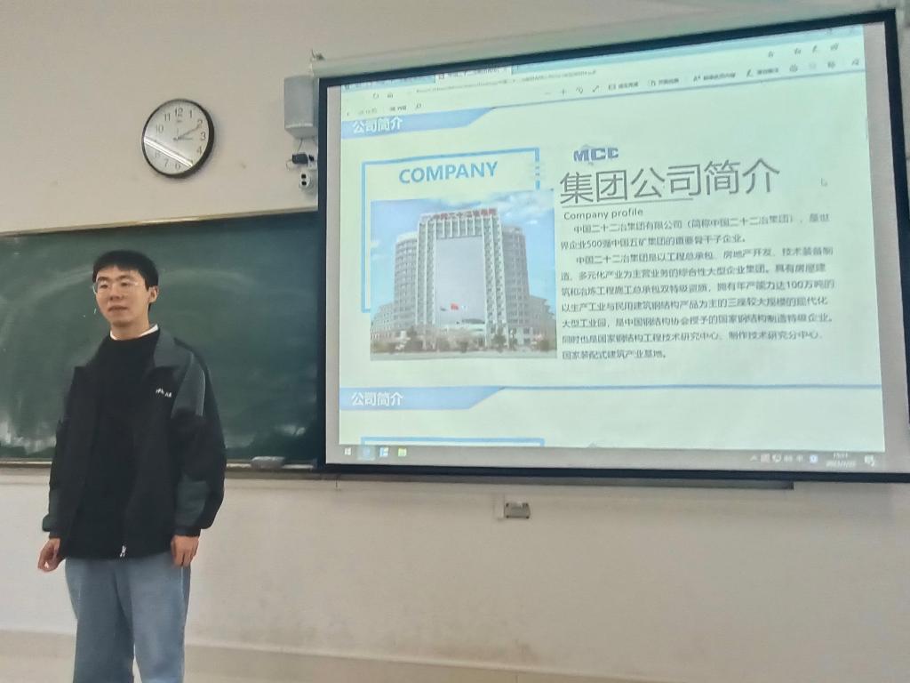 3月22日下午,中国二十二冶集团来校招聘,电气与电子工程学院2022届校友姚健随企业招聘人员共同来校。