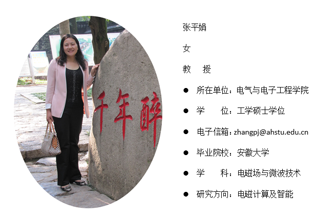 2009年毕业于安徽大学,获工学硕士学位;主持科研项目1项,发表学术论文8篇,主持教学研究项目3项,出版教材1部,获发明专利2项。主要承担电子信息工程专业数字电子技术、电磁场与电磁波等课程教学任务。指导学生学科竞赛等情况。
