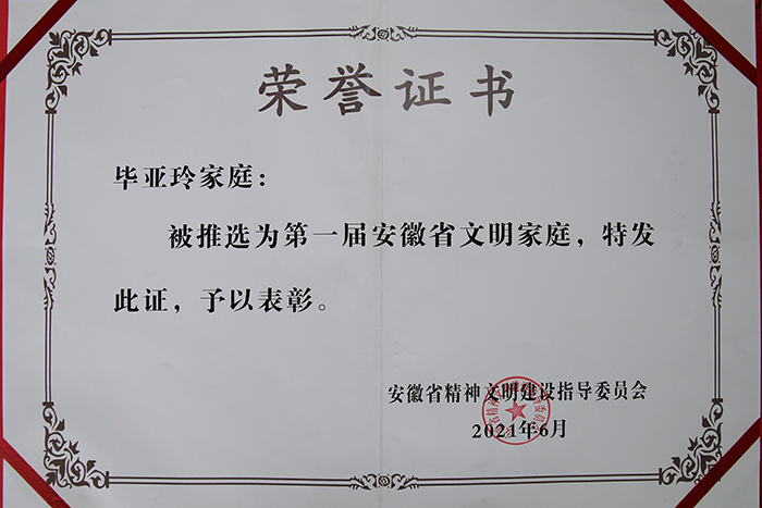 值此庆贺第37个教师节之际,毕亚玲家庭荣获安徽省首届“文明家庭”荣誉称号,希望广大教职员工以毕亚玲家庭为榜样,扎根安科,建设安科,为实现第三次党代会确定的战略目标而努力奋斗。(特约通讯员张以保 审核汪洋)