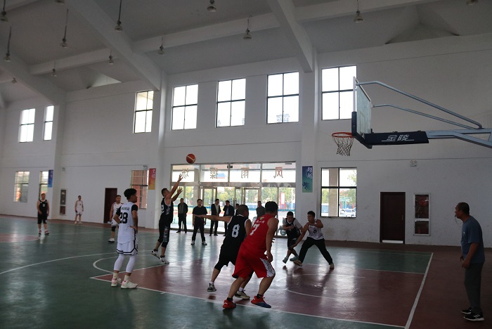 实地考察结束后,校教职工篮协队与黄湾乡村BA队举行一场交流比赛,精彩比赛吸引众多村民篮球爱好者观看。