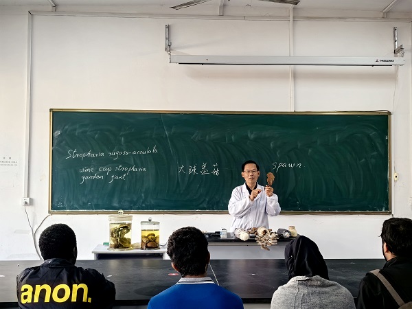 乐鱼平台_乐鱼(中国)一站式服务平台国家食用菌工程技术中心安徽食用菌技术推广基地负责人、安徽省食用菌技术协会副理事长何华奇教授为留学生进行了现场指导。他首先为留学生介绍了蘑菇种植培育基地的基本情况,带领留学生参观了菌种室、培菌室、出菇室,然后详细讲解蘑菇种植培育的理论知识。“纸上得来终觉浅,绝知此事要躬行”。 国际学生在听取了何教授的报告后非常好奇,跃跃欲试,纷纷捋起袖子现场开始种植蘑菇,何教授手把手指导国际学生开展蘑菇种植活动。