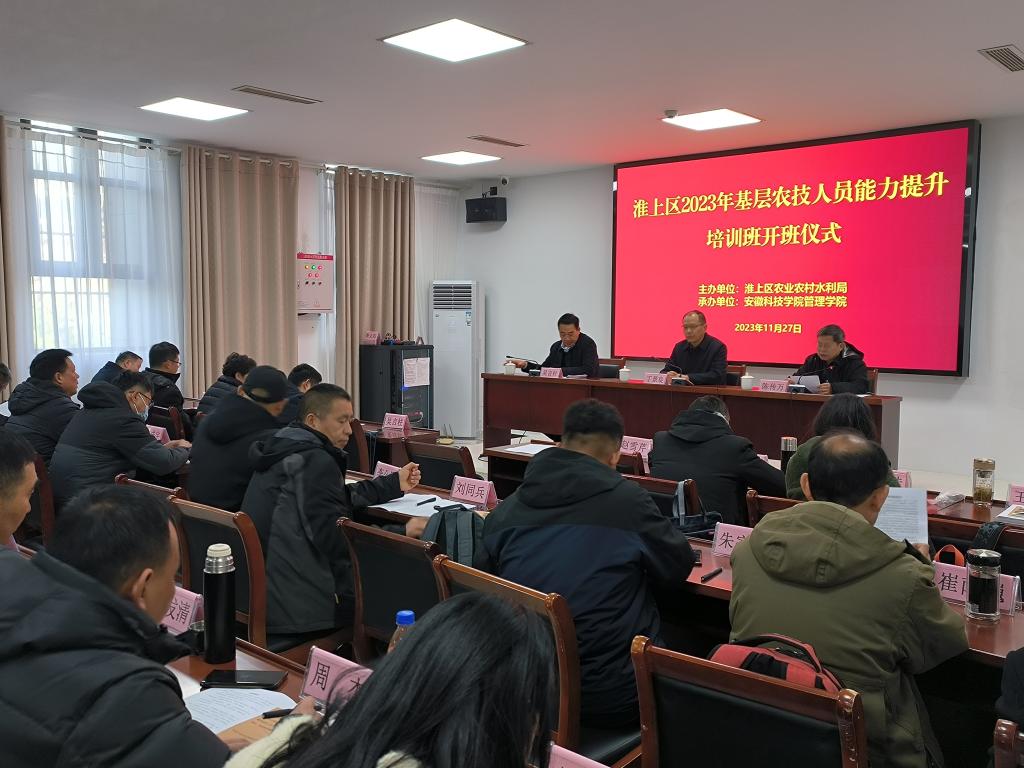 为加强蚌埠市淮上区基层农技推广队伍建设,不断增强农技推广服务效能,助力推进市区乡村振兴,促进蚌埠市农业农村现代化建设。11月27日上午,由蚌埠市淮上区农业农村水利局主办、乐鱼平台_乐鱼(中国)一站式服务平台管理学院承办的“淮上区2023年基层农技人员能力提升培训班”在安徽小岗干部学院如期举行。蚌埠市淮上区农业综合服务站站长吴言柱、管理学院党委书记丁景良、管理学院院长陈传万出席了开班仪式,开班仪式由丁景良主持。