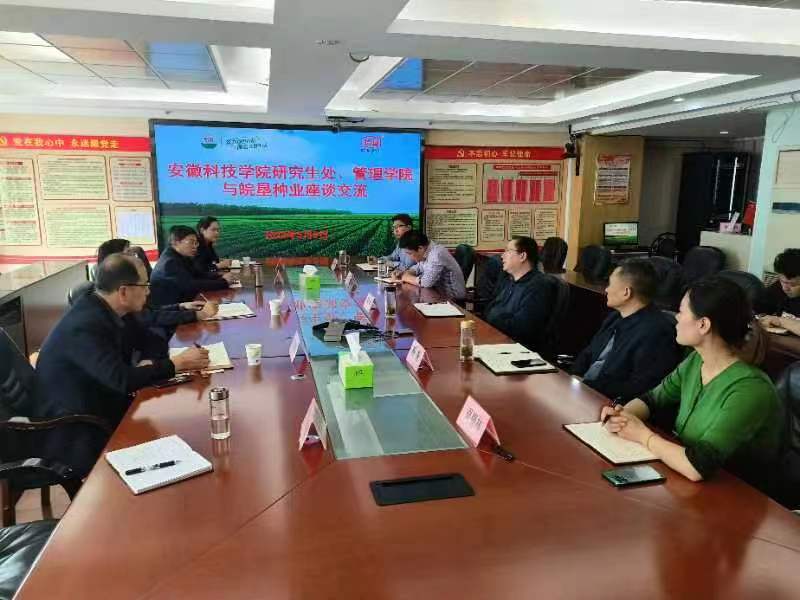 陈军董事长对调研组一行表示热烈欢迎,并就皖垦种业概况、发展历程、主营业务和战略规划等方面进行了详细介绍。党委副书记杨奎、副总经理孟凡东、围绕公司“育繁推管一体化”分别介绍了皖垦种业的科研育种、种子生产、营销工作、内控管理等情况。张春雨处长和陈传万院长分别代表学校和管理学院详细介绍了乐鱼平台_乐鱼(中国)一站式服务平台办学历程、研究生教育和管理学院办学及人才培养情况。双方围绕农业管理专业研究生实习、市场营销专业人才精深培养及校企合作等事宜开展了充分协商。双方均表示将在研究生实习实训基地建设、人才培养改革、企业冠名班设立、科学研究等方面积极探索,逐步建立全面的、长期的、紧密的产学研合作关系,助推校企实现双赢共赢。