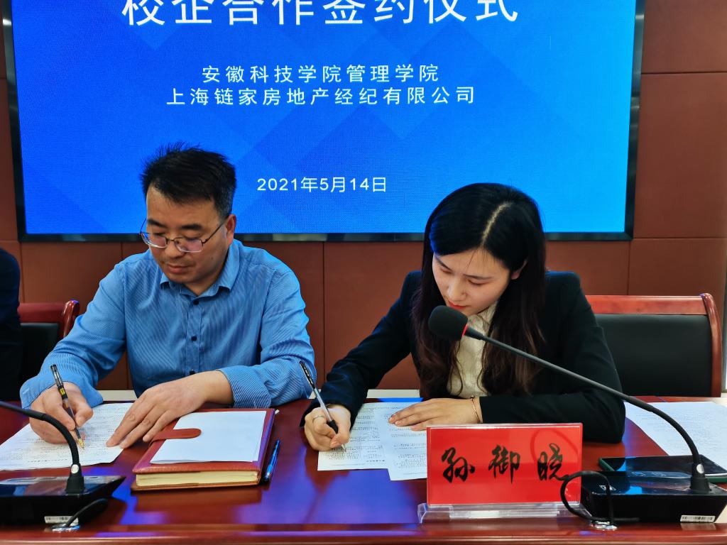 赵伟峰与孙御晓共同签署了《乐鱼平台_乐鱼(中国)一站式服务平台与上海链家房地产经纪有限公司校企合作协议书》。