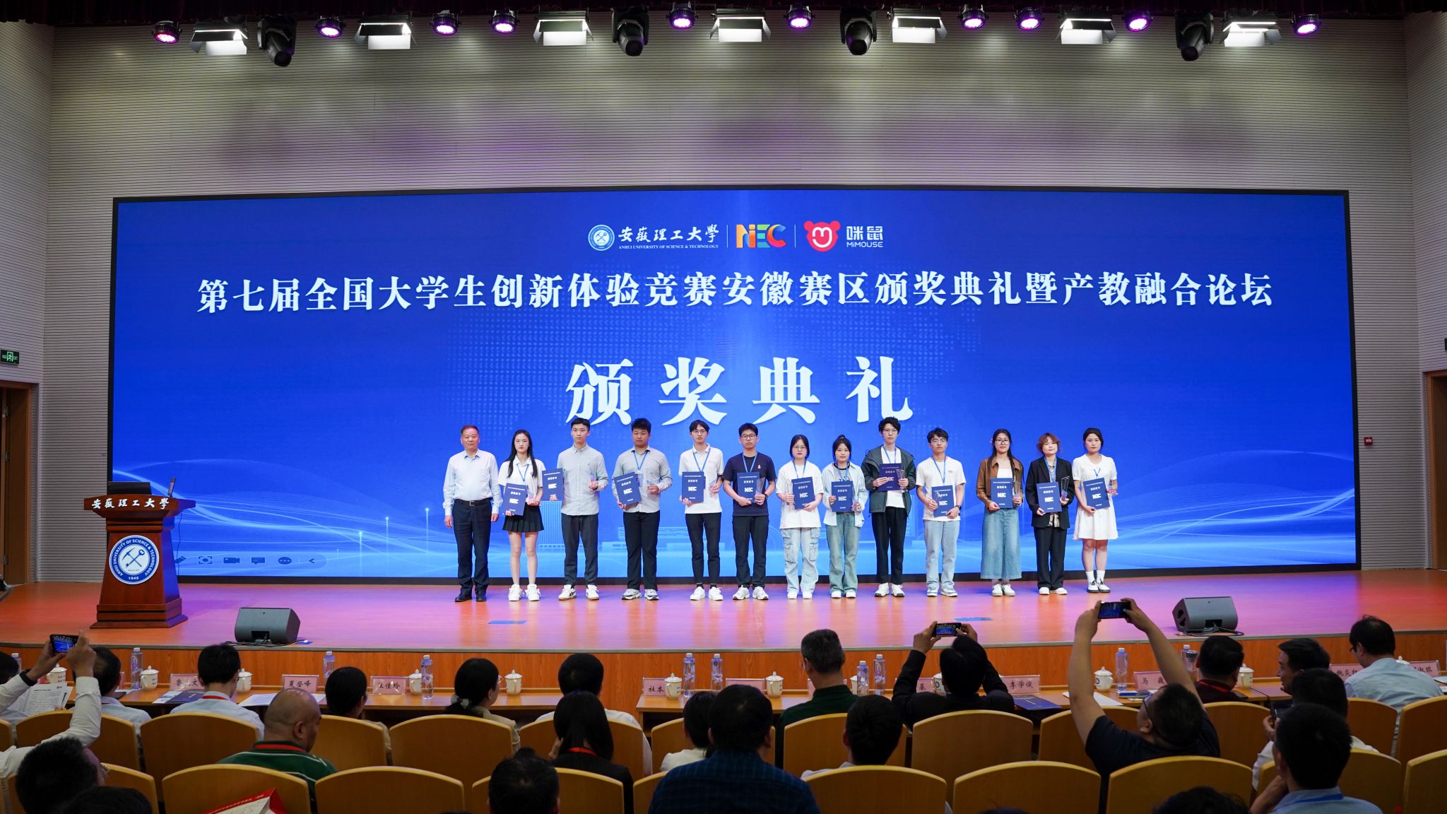 2024年5月10日,由中国创造学会主办,安徽理工大学和安徽咪鼠科技有限公司承办的第七届全国大学生创新体验竞赛安徽赛区颁奖典礼暨产教融合论坛在安徽理工大学举行。本次活动得到了安徽省教育厅高教处副处长朱永国、安徽理工大学副校长宫能平、淮南市工商联主席杜本硕等多所高校和企业的领导和专家的大力支持与参与。