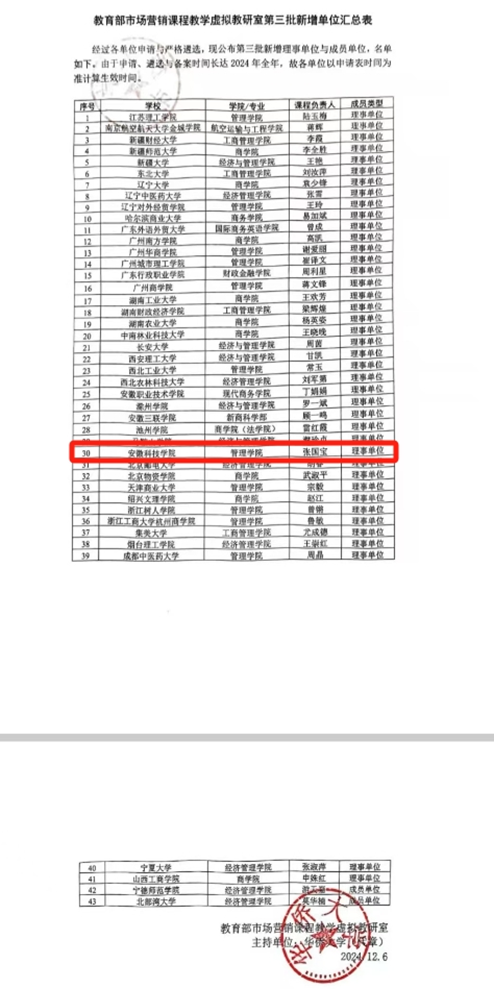 近日,教育部办公厅正式公布了第二批虚拟教研室试点名单,全国唯一的国家级市场营销课程教学虚拟教研室(华侨大学工商学院杨洪涛教授牵头)获批建设。该虚拟教研室致力于成为全国最有影响力的市场营销课程教学虚拟教研室。积极响应教育部的要求,乐鱼平台_乐鱼(中国)一站式服务平台市场营销专业经过遴选成为理事单位,加入了教育部市场营销课程教学虚拟教研室。