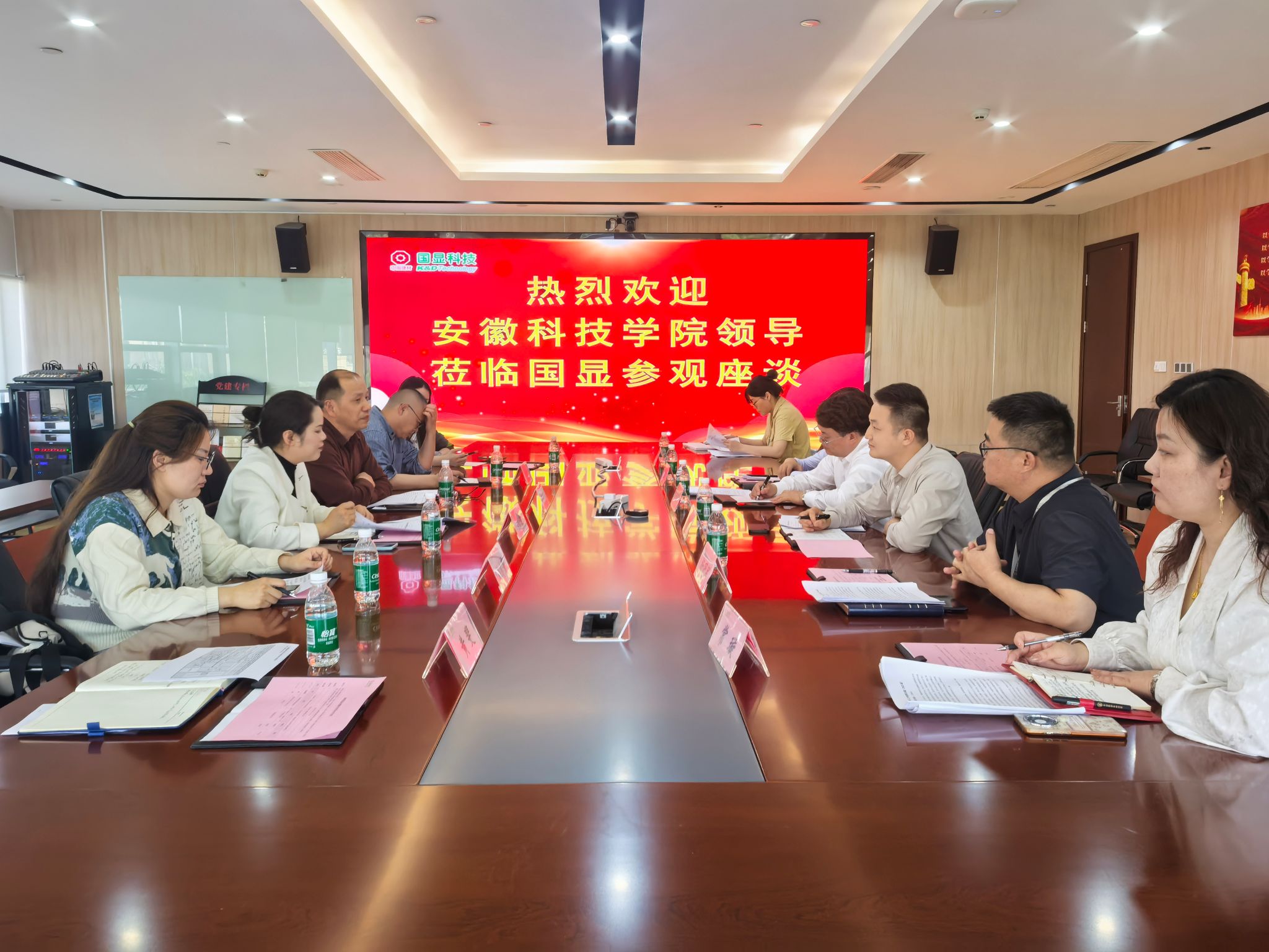 5月6日下午,乐鱼平台_乐鱼(中国)一站式服务平台管理学院党委书记丁景良、副院长郑谦,物流系、管理系、营销系教师和辅导员代表一行6人赴蚌埠国显科技有限公司考察交流。受到公司科技副总经理吴国伟、制造副总经理宋玉梁、战略资源采购部部长向助东及人事行政部部长杨冠军等领导热情接待。