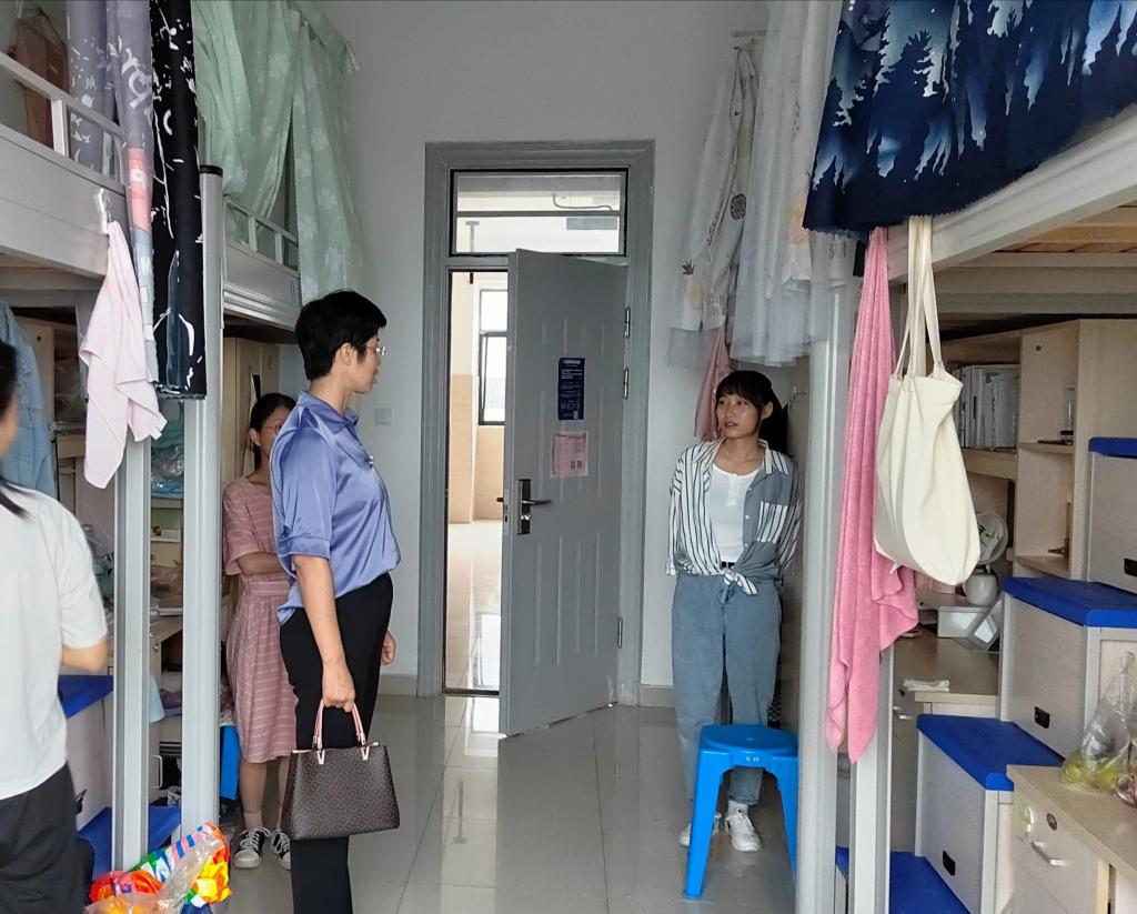为深入了解返校学生宿舍生活情况,进一步摸清学生思想动态,近日,管理学院党委书记丁景良、党委副书记陶漫率全体辅导深入学生宿舍看望返校学生,并开展宿舍安全排查。
