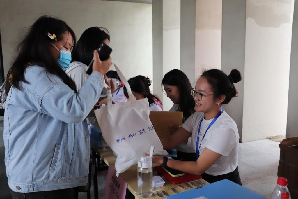 在龙湖校区管理学院新生报到点,学院老师和志愿者们,已经在等待着孙如梦同学。