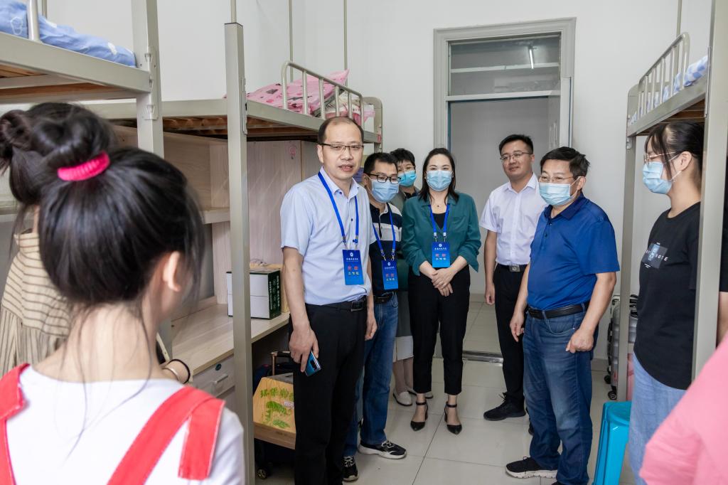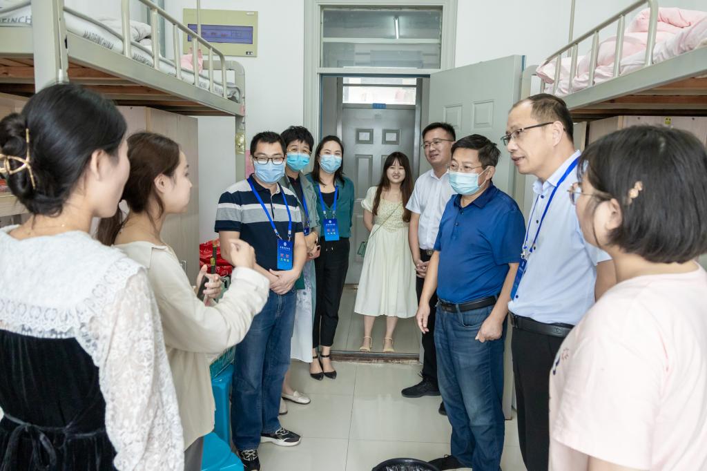 “家乡是哪里的?”“和爸爸妈妈一起来的吗?”“刚进大学感觉怎么样?”“要做好学业规划”“室友间相互熟悉了吗?”“平时要注意人身和财产安全”……丁景良、陈传万一行来到了德馨苑2号楼、3号楼,亲切走访看望广大新同学,每到一间宿舍,与同学们亲切交谈,问寒问暖,教育新生要尽早适应大学学习与生活,鼓励新生要早定学习目标,要求亲生要与家长保持经常沟通,要多与辅导员和老师加强交流,要注意疫情防控和自身安全,要锤炼品格、磨练意志、学会担当……