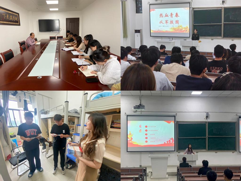 为深入学习贯彻党的二十大精神,切实推进征兵工作落实落地,管理学院于2023年5月22日到5月26日开展了征兵政策宣传月系列活动,采取思想引领、动员宣讲、政策解读、选树榜样等多项举措,多维度、全方位开展宣传动员,切实增强征兵宣传工作实效。