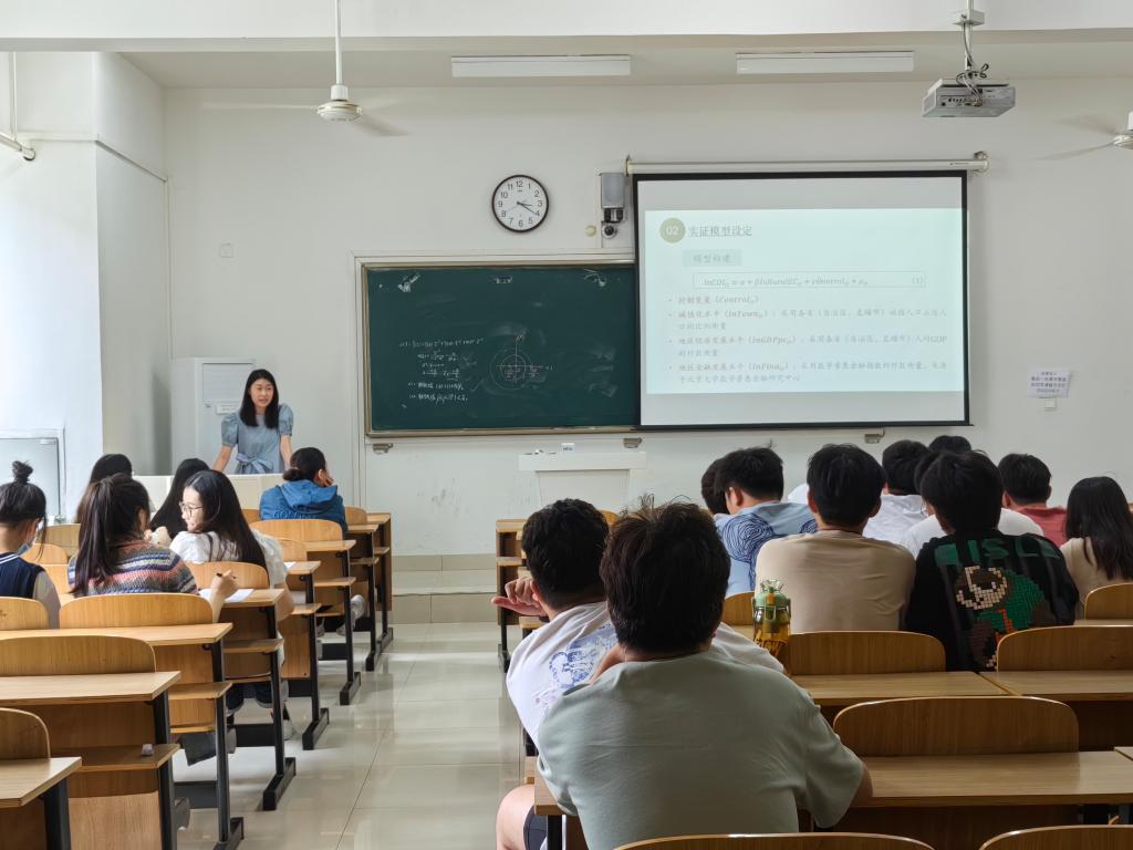 本期学术论坛交流报告会邀请了2021级管理学院郭艳、徐梦婷分别分享了科研经历、科研成果、科研心得。郭艳向研究生们作了题为“基于Var模型的农业经济增长影响因素和发展”的学术报告,从“绪论、研究方法、实证分析、结论与建议”四个方面进行阐述;徐梦婷结合自己的论文“农村电商发展对农村居民人均可支配收入的影响研究”向大家分享了自己在科研方面的学习和收获。最后,研究生们现场进行了深入的探讨和交流。