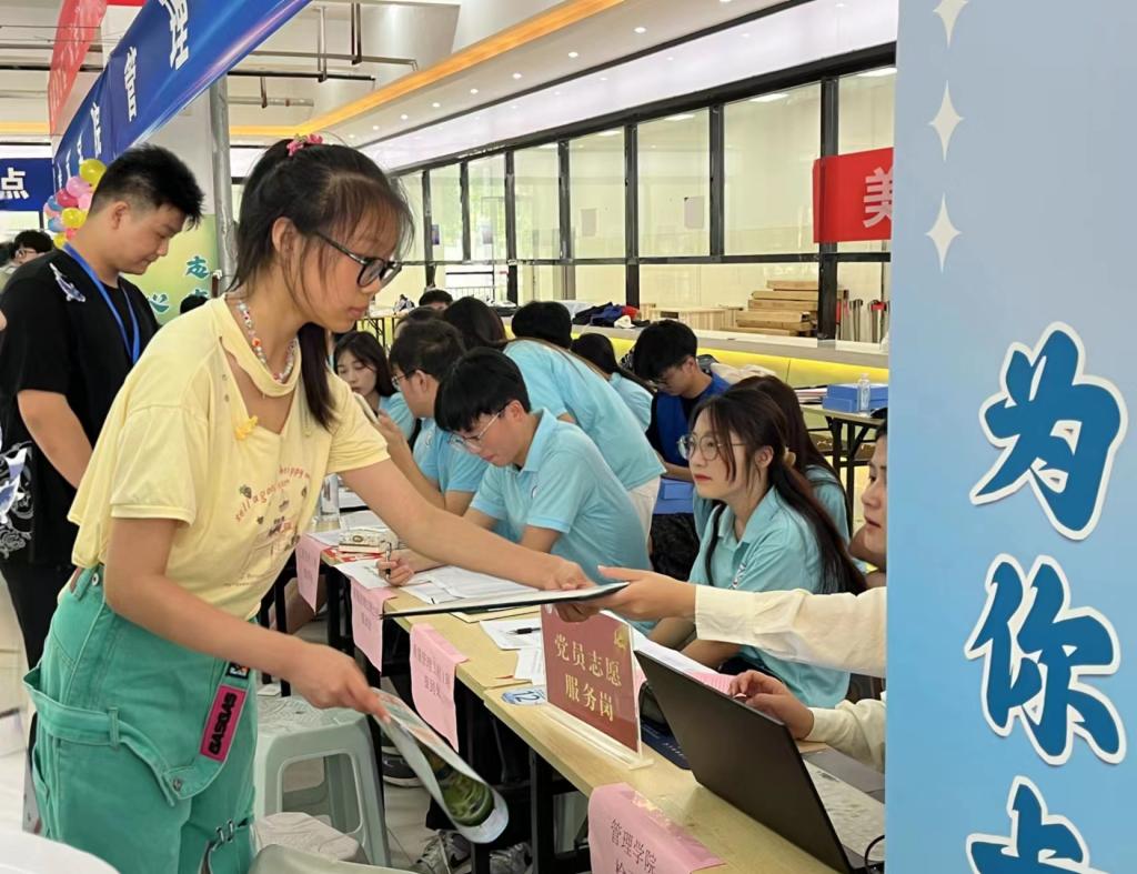 忙碌的“蓝马甲”志愿者