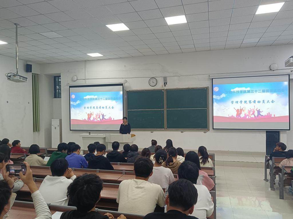 为做好校第三十二届田径运动会参赛准备工作,激发参赛运动员备战热情,10月27日下午,管理学院在致知楼C111教室召开校运会运动员赛前动员大会。学院党委副书记陶漫出席会议。学院全体辅导员、院学生会艺体中心工作人员及参赛运动员参加,会议由团委负责人江旭聪主持。