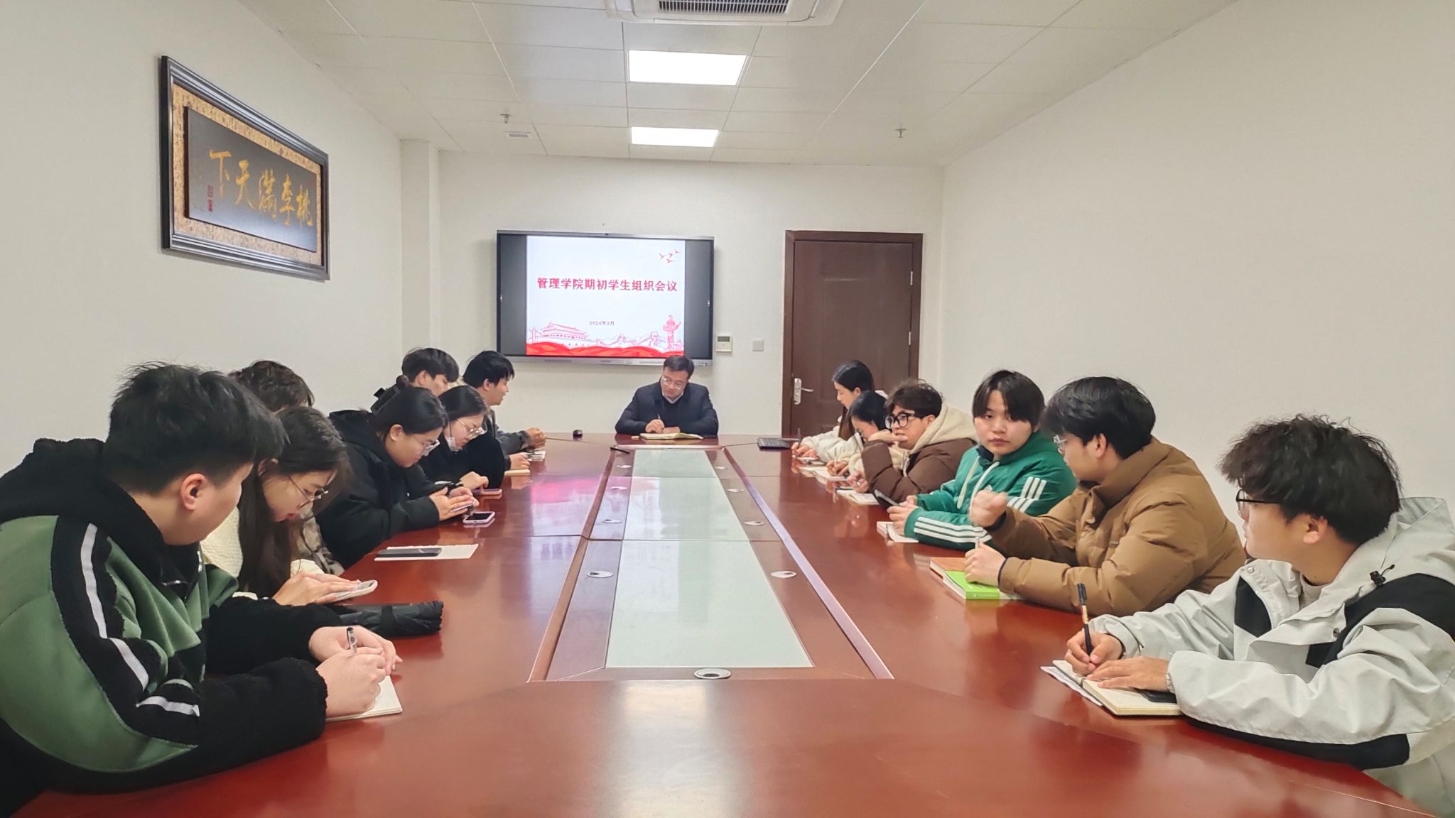 3月5日晚,管理学院在西辅楼会议室召开期初学生组织负责人工作会议,团委副书记江旭聪出席会议。