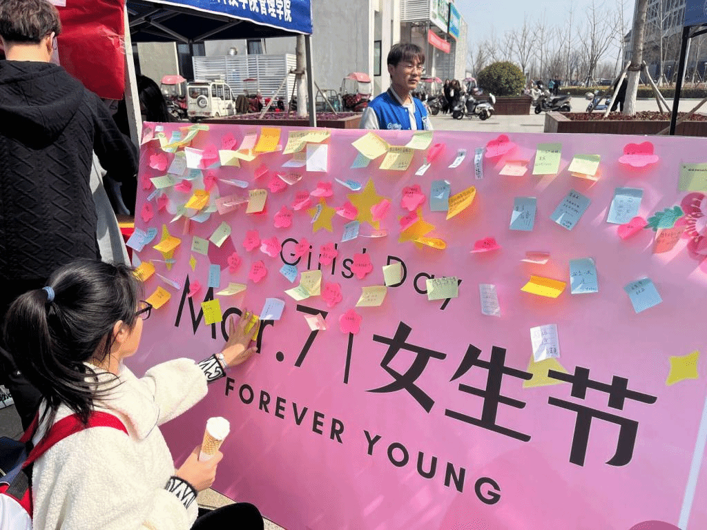 为丰富校园生活,营造关爱女生的浓厚氛围,3月7日,伴随着女生节主题展板的推出,由管理学院学生会与电气与电子工程学院学生会联合举办的“三七女生节—心愿便利贴”活动在龙湖校区小广场顺利展开。管理学院学生会指导老师江旭聪、姚姝媛也深入现场指导此次活动开展,一起帮助广大女生实现女生节愿望。