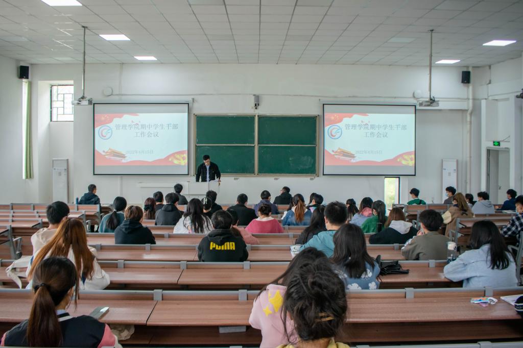 4月15日中午,管理学院召开期中学生干部会议,党委副书记陶漫出席会议并讲话。党政办公室主任李永鹏、团委副书记江旭聪、专职辅导员黄斐出席会议,会议由李永鹏主持。
