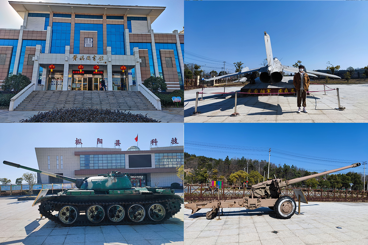 紧接着,团队成员乘车来到了枞阳科技馆,馆外摆放着我国各种先进战斗机和主战坦克的模型;馆内则陈列着许多有意思的实验作品,不仅有声学、力学、光学、电磁学、数学等方面的现代科技成果展示,还有九连环、鲁班锁、地动仪等古人智慧的结晶。近距离接触感知科技馆陈列的各种科技作品,团队成员无不感叹:“科技馆就像是中国五千年科技发展的一个缩影,既有灿烂辉煌的古代文化,更有令人惊叹的现代科技。作为21世纪的新时代青年,我们无不肩负着祖国科技发展的光荣使命,任重而道远。”