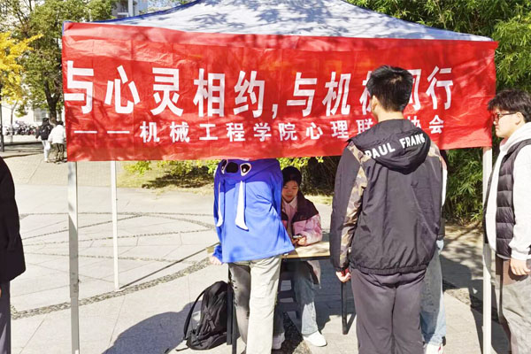 为响应学校“12·15”心理健康月活动,丰富学生校园生活。11月22日,机械工程学院学生心理委员联合会在凤阳校区西区小广场举办“与心灵相约,与机械同行”主题活动。