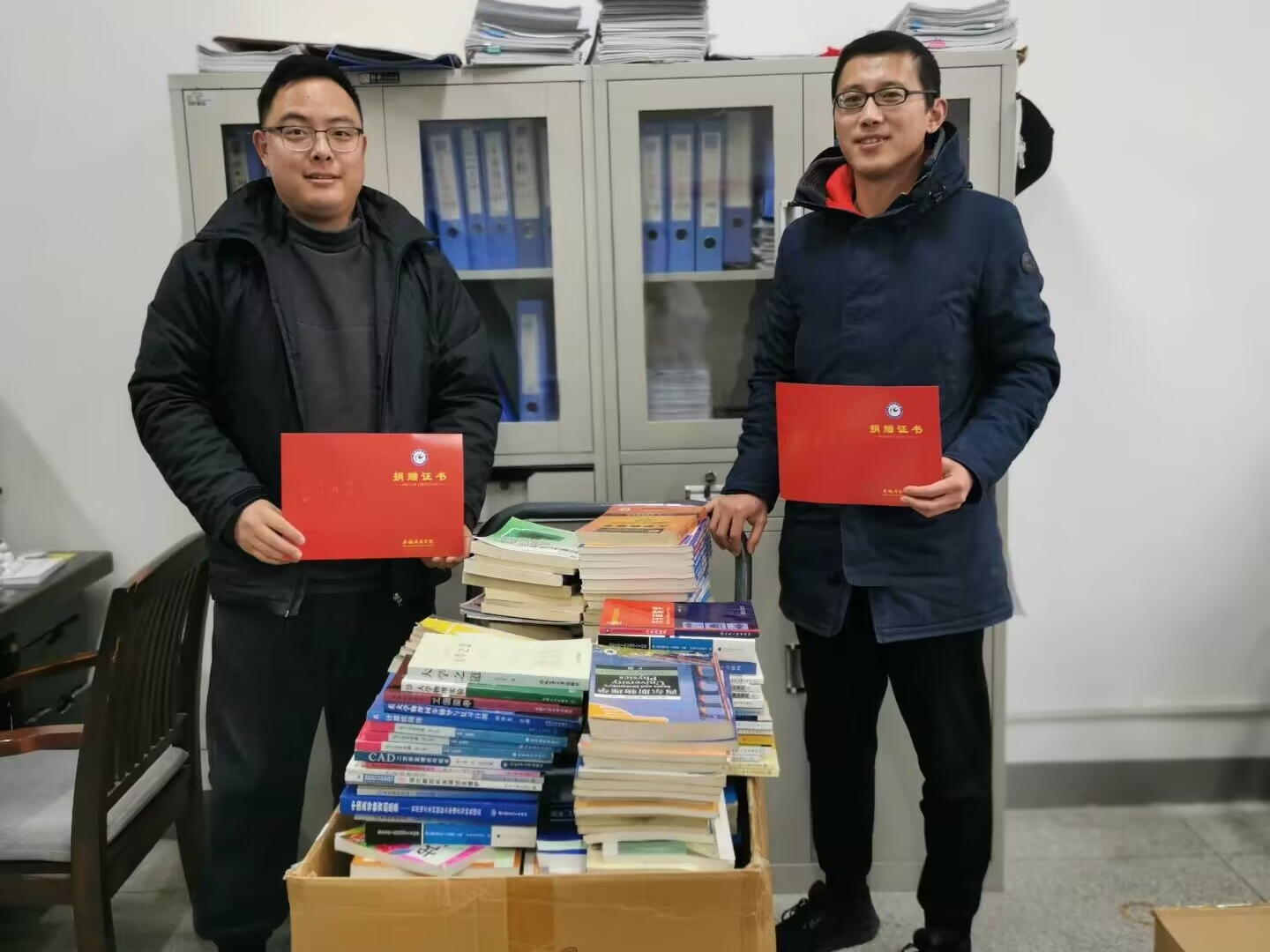 1月10日下午,机械工程学院党委副书记张程、党政办主任王飞代表学院向图书馆捐赠移交由学院全体师生捐赠的图书4100余册。