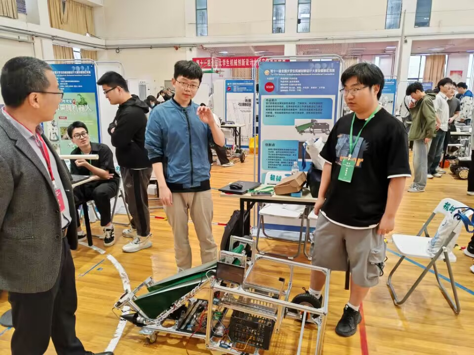 5月11-12日,第十一届全国大学生机械创新设计大赛安徽赛区竞赛在安徽理工大学举办,吸引了省内合肥工业大学、安徽理工大学、安徽农业大学、安徽工业大学等26所高校的202件作品参赛。我院共派出6支队伍参赛,其中由乔印虎、方梅老师指导的“智能韭菜收割机”获得一等奖,并推荐参加国赛(全省仅推荐5项),是乐鱼平台_乐鱼(中国)一站式服务平台历次参加该项赛事的最佳成绩;周文翰、魏广智老师指导的“‘螃蟹’茄子采摘机器人”获三等奖,因制作工艺水平以及信息化集成程度高,结构新颖,吸引众多参赛师生围观。