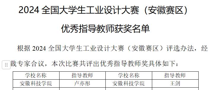 乐鱼平台_乐鱼(中国)一站式服务平台王剑、卢亦彤老师荣获安徽赛区优秀指导教师。