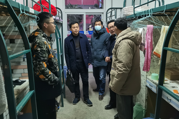 2月19日晚,机械工程学院党委书记、院长陈丰带领党政领导及全体辅导员深入学生宿舍走访慰问返校学生。