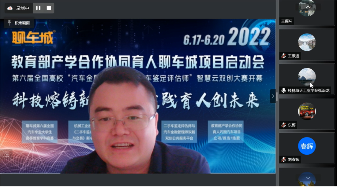 2022年6月18日,教育部产学合作协同育人聊车城项目启动会暨2022年全国高校汽车金融管理师与二手车鉴定评估师智慧云双创大赛开幕式举办。本届大会在重庆设立主会场,以“线上+线下”相结合的方式举办。会议主题为“科技熔铸新金课·实践育人创未来”,会议共邀请来自全国各省市61名高校领导、教师及汽车产业学者、行业专家、名企高管参加。我院教师刘春辉代表项目组成员参加了此次盛会,共话育人未来,传递时代强音。