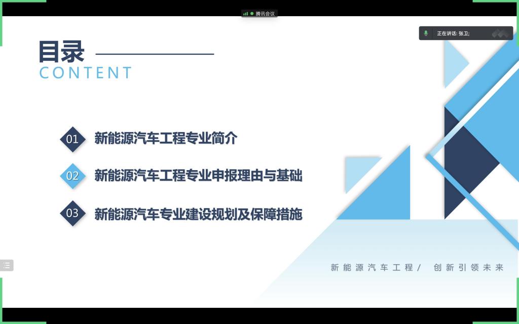 新能源汽车工程专业是依据国家《中国制造2025》等重大战略部署,主动适应汽车产业向着电动化、智能化、网联化、共享化“新四化”的专业布局。2018年,教育部正式将新能源汽车工程专业列入《普通高等学校本科专业目录》,2021年,全国有28所本科院校获批开设该专业。2022年3月,安徽省教育厅、安徽省发展和改革委员会联合下发《安徽省高校服务新能源汽车和智能网联汽车产业人才培养行动方案》,依据文件精神,学校结合办学定位和自身办学优势主动部署新设与新能源汽车和智能网联汽车产业高度契合的新能源汽车工程专业,这是学校发挥传统学科专业资源优势实现传统学科专业新发展,加强“四新”专业布局,优化专业结构,深化学校学科专业结构改革,服务地方产业创新发展的重要举措。汽车工程系对新专业申报工作十分重视,多次组织全系教师进行集体讨论,群策群力,精心策划,严格按照专业申报要求准备相关材料。机械工程学院对新专业申报工作也给予了高度重视,学院于7月13日组织专家组对新专业申报工作进行了论证讨论。7月15日下午,学校召开新专业申报论证工作线上会议,张卫代表学院就新专业申报情况进行了汇报,与会专家对汽车工程系新专业申报准备工作给予了充分肯定并提了出宝贵建议。