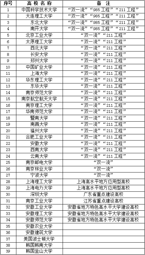 毕业生考取院校主要包括:中国科学技术大学、合肥工业大学、安徽大学、南京工业大学、南京林业大学、南京师范大学、上海理工大学以及美国波士顿大学等一批国内外知名高校。