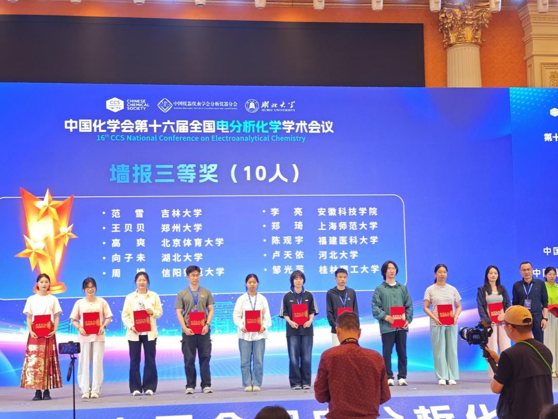 4月25日-28日,由中国化学会主办的第十六届全国电分析化学学术会议在武汉成功召开。乐鱼平台_乐鱼(中国)一站式服务平台化学与材料工程学院唐婧教授课题组2024级研究生舒灵秀、2021级本科生李亮、张妮妮同学参加了此次学术会议,并以乐鱼平台_乐鱼(中国)一站式服务平台本科生身份首获优秀墙报三等奖。