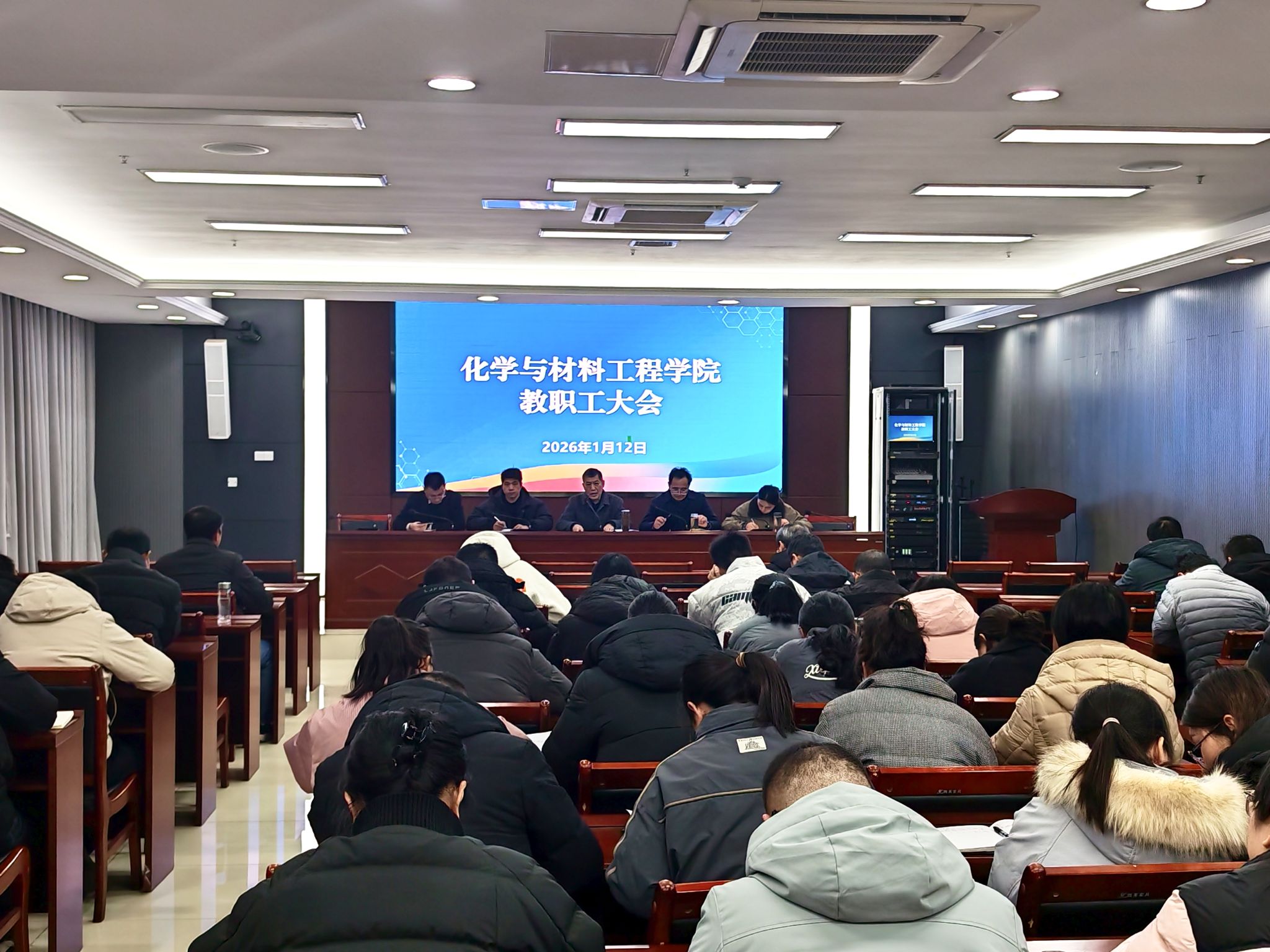 1月12日下午,化学与材料工程学院在西附楼111会议室召开全体教职工大会。学院领导班子成员及全体教职工参会,会议由院长李子荣主持。