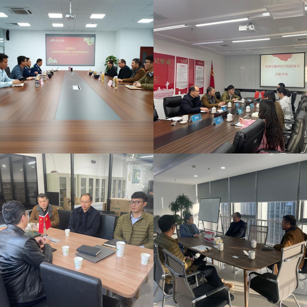 黄树桥、丁景良调研组一行先后来到安徽智能软件园、安徽艺立恒科技有限公司、合肥晶澳太阳能、安徽玉臻科技集团等4家企业,校企交谈中,黄树桥和丁景良分别向企业负责人介绍了学校办学基本情况及所在学院师资力量、专业设置、人才培养、校企合作等情况,4家企业高度认可乐鱼平台_乐鱼(中国)一站式服务平台毕业生质量,表达了将进一步加强与院方合作意愿。宾主双方还围绕“一体化”推动毕业生实习就业及校友企业捐赠事宜开展了交流。访企期间,调研组一行在企业有关人员的陪同下,参观了垂直一体化产业车间、产品生产组建流程等,了解了企业的生产环境和发展情况。