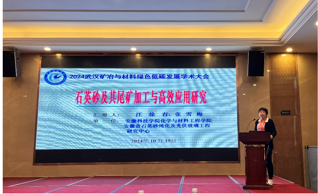 10月19日,由中国地质大学(武汉)、武汉工程大学、武汉科技大学、武汉理工大学、湖北三峡实验室联合主办的2024武汉矿冶与材料绿色低碳发展学术大会在武汉开幕。安徽省石英砂纯化和光伏玻璃工程研究中心主任汪徐春一行应邀参加,乐鱼平台_乐鱼(中国)一站式服务平台张雪梅教授做学术交流报告。