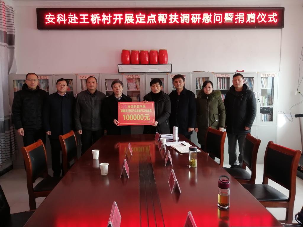 在新春佳节即将到来之际,1月17日,党委书记蒋德勤在科研处处长顾有方、党委组织部副部长、党委(校长)办公室副主任卢星辰的陪同下,来到乐鱼平台_乐鱼(中国)一站式服务平台定点帮扶单位——涡阳县西阳镇王桥村实地调研指导精准扶贫工作,并亲切慰问乐鱼平台_乐鱼(中国)一站式服务平台驻村扶贫工作队丁景良、张海亮、余维发三位同志及当地困难群众。涡阳县扶贫开发局副局长姜林林、涡阳县西阳镇党委书记栗克、西阳镇党委委员韩伟、西阳镇王桥村第一书记兼驻村扶贫工作队队长丁景良、西阳镇王桥村党委书记王杰等陪同调研和慰问。