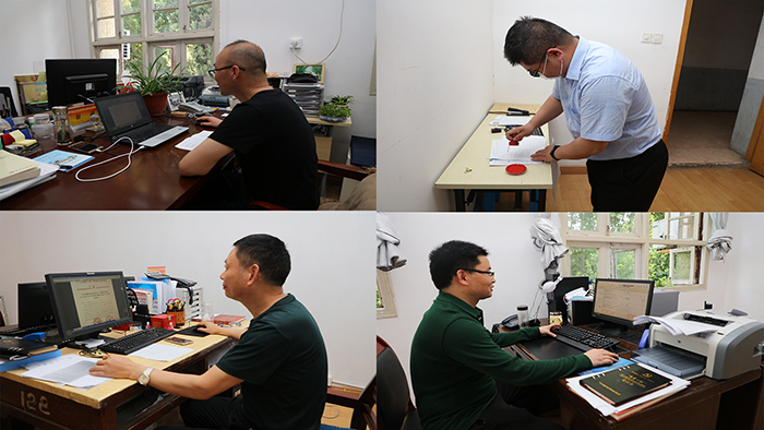 拿起相机这会儿,是5月3日下午5时20分,我们深入到部分公共楼宇、两校区的门卫岗,被一个个忙碌的剪影感动着:我看到手臂打着石膏夹板仍在加班整理材料的机关党员;我看到带着宝宝到办公室加班的普通教师;我看到实验室戴着口罩、挥汗整理课题申报材料的年轻教授;我看到尚在休产假的女教师通过网络远程指导毕业生论文;我看到年近六旬的辅导员老师,通过线上班会给学生开展疫情防控与健康教育;我看到综合档案室库房里,忠实记录安科“昨天”,为学校“存史、资政、育人”默默奉献的专兼职档案人;我看到两个校区的门卫岗,一丝不苟守护平安健康校园的工作人员;我看到校医院又一班医生护士接力对师生健康的守护;我还注意到,加班的人群中有数对“夫妻”档,虽处在不同的办公区域,但都朝着一个目标前行;我看到更多的,是办公室伏案工作的人们坚毅、专注的眼神……