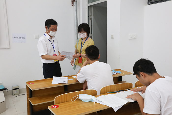 学校抽调100多名教职员工参与考试服务及监考工作,从学生在校管理、突发事件应对、学生健康上报、诚信考试宣传教育和安全保卫等方面加强沟通协作,全程实现了“专升本”考试学生闭环管理。