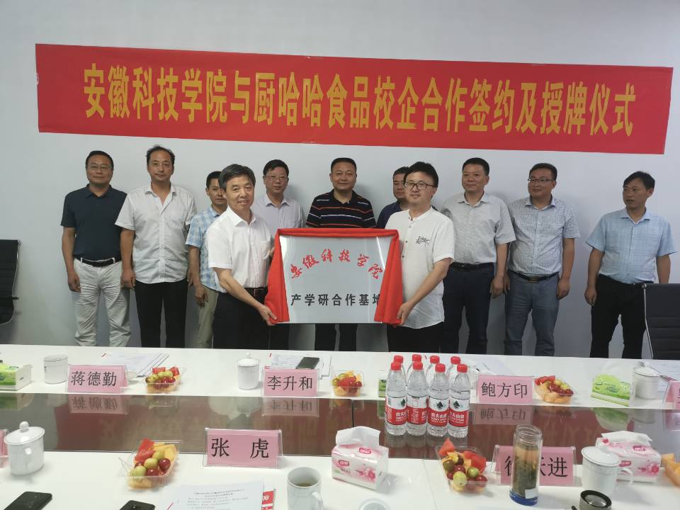 仪式上,蒋德勤向安徽厨哈哈食品科技有限公司颁授了乐鱼平台_乐鱼(中国)一站式服务平台产学研合作基地、乐鱼平台_乐鱼(中国)一站式服务平台研究生联合培养基地牌匾。校企双方分别签署了校企产学研合作协议、研究生联合培养基地合作协议和宅食技术合作协议。