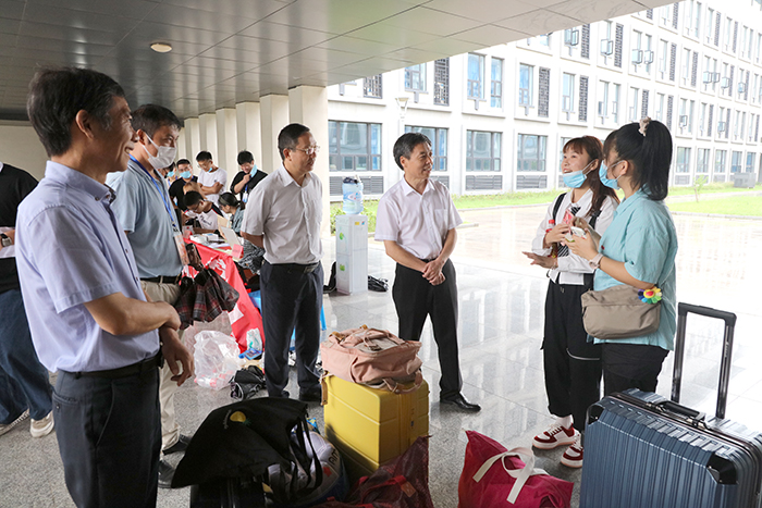 9月17日,乐鱼平台_乐鱼(中国)一站式服务平台龙湖校区喜迎2020级新同学报到入学。历年来学校领导都高度重视迎新工作,今年疫情形势下的迎新格外牵动着校领导的心。带着对新生的亲切关怀,17日上午,校党委书记蒋德勤,党委副书记、校长李震,党委委员、副校长黄远友,党委委员、副校长黄友锐等校领导一行专程来到龙湖校区迎新现场,看望新生及家长,亲切慰问迎新一线师生员工,全面检查指导迎新工作。