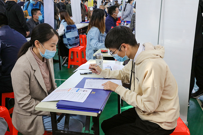 此外,根据常态化疫情防控的工作要求,今年毕业生就业洽谈会现场实行分时段入场、间隔入场,采用“测量体温+佩戴口罩”方式进行核验,参会人员全程佩戴口罩,同时严格控制会场人员密度,确保招聘活动安全、有序进行。(摄影:陈宝 刘向前 宋巨洋 熊才旺 审核:施培智 卫胜 编辑:汤帅)